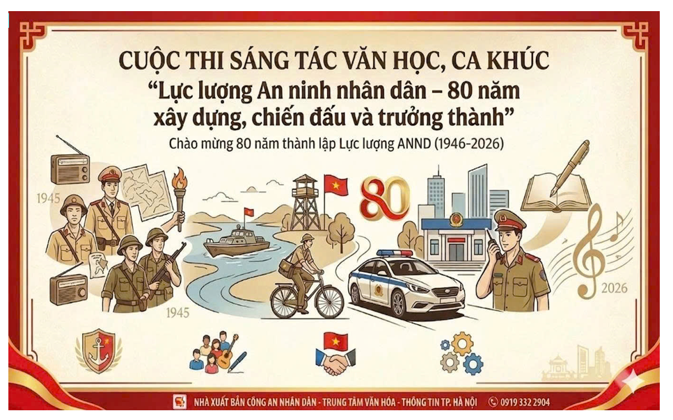 Nhân kỷ niệm 80 năm Ngày truyền thống lực lượng An ninh nhân dân (12/7/1946 - 12/7/2026), Công an thành phố Hà Nội tổ chức cuộc thi sáng tác văn học, ca khúc với chủ đề "Lực lượng An ninh nhân dân - 80 năm xây dựng, chiến đấu và trưởng thành trong Công an thành phố Hà Nội".